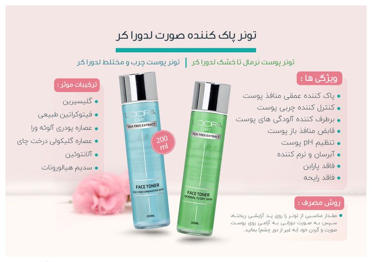 تونر پوست نرمال تا خشک لدورا کر 200 میلی لیتر